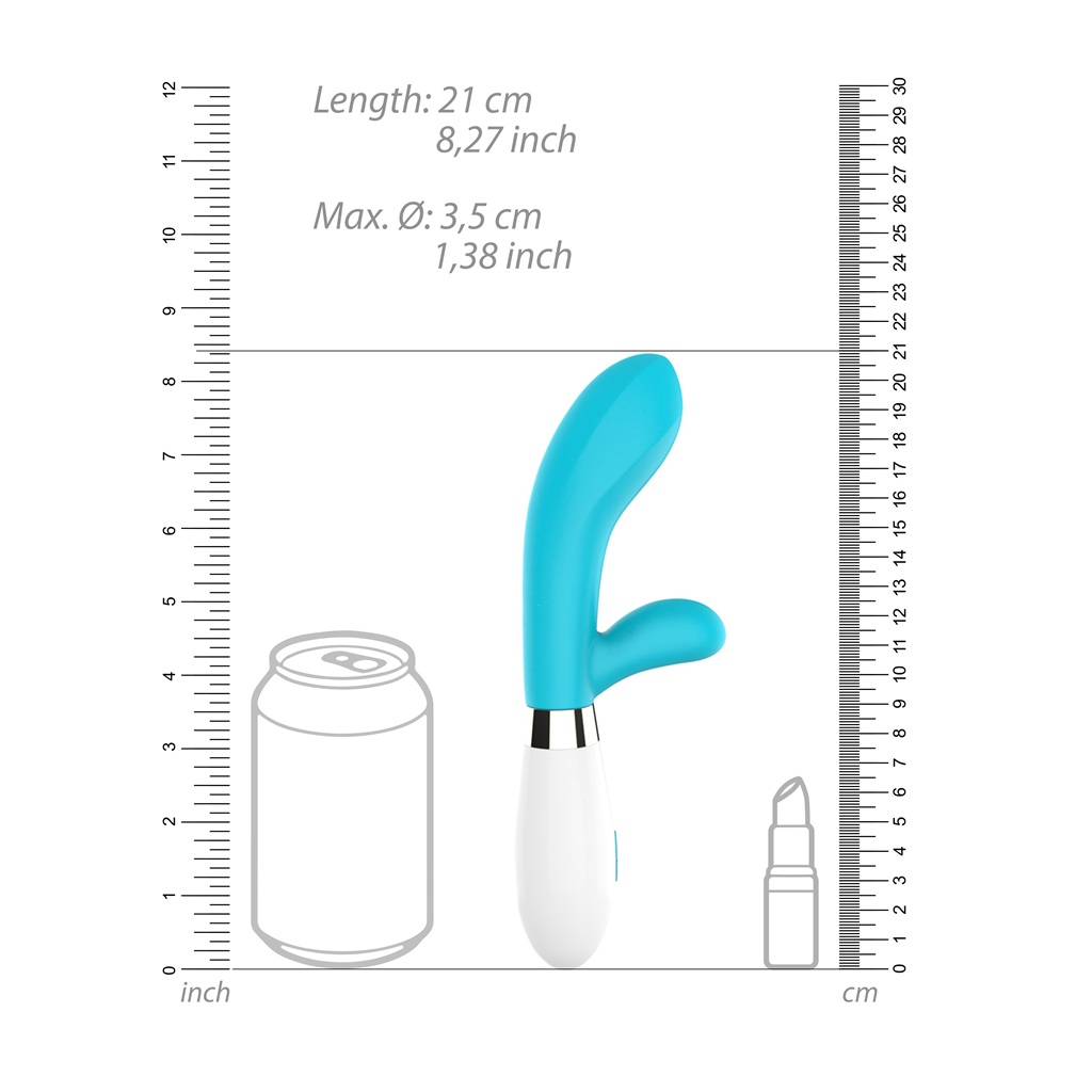 The ACHILLES has, in this case, its strongest point in the "heel" of the vibrator. The robust execution of the clitoral stimulator will make you gasp for air when you reach the big "O"! Made of high-grade silicone and ABS. Comes with 2 extra strong F1 motors revving up to 5200rpm and 15000rpm in the curved tip for perfect G-spot stimulation! The 10 different speed modes will make sure there is always something for everyone and at less than 60dB no one but you will know about your secret rendezvous. This beautiful toy is battery operated. Just put 2 AAA batteries and enjoy a undisturbed pleasurous playtime! The ACHILLES stands 21 cm tall and has a girth of 3.5 cm.