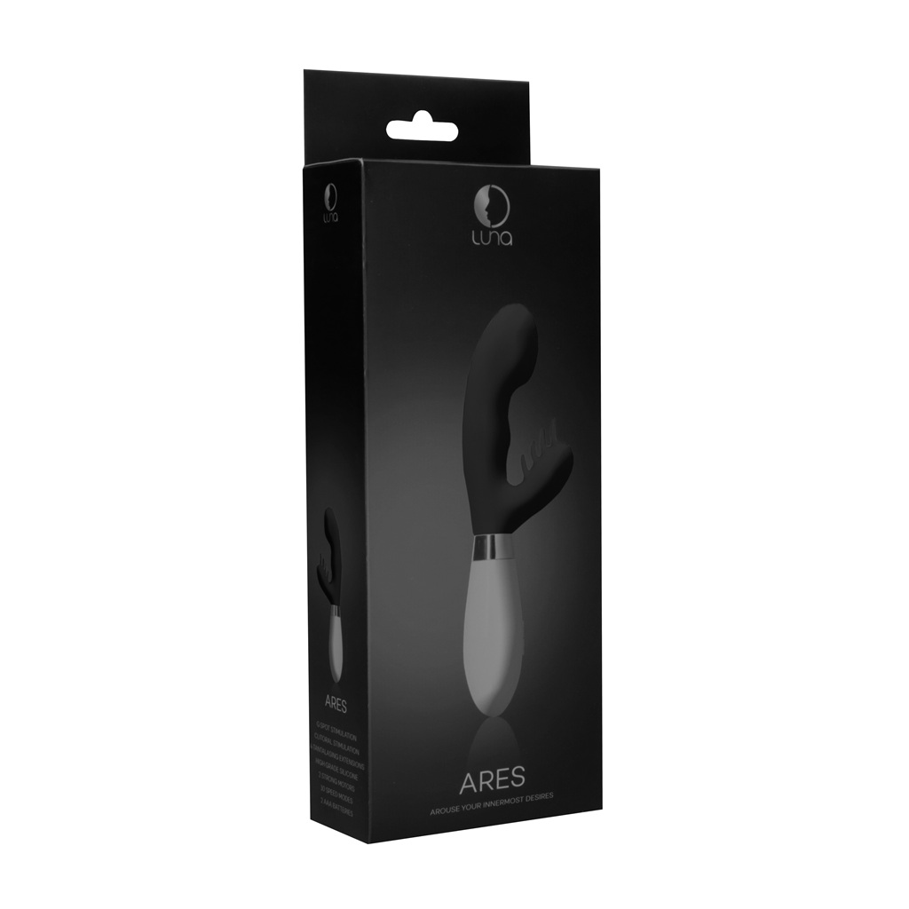 The ARES will go all the way for your pleasure! With its G-spot triggering head and clitoral stimulator, executed with 4 tantalasing extensions, this vibrator takes you on a trip to orgasm heaven! Made of high-grade silicone and ABS, the ARES comes with two 10-speed motors revving up to a mind-blowing 7000 rpm, but stay very silent (>50db) at the same time! The ARES stands 21.2 cm tall and has a girth of 3.6 cm.